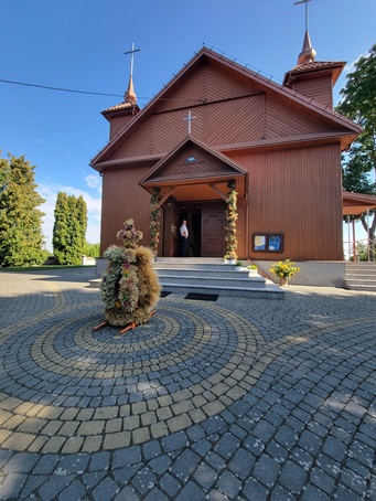 27 sierpnia 2023 r. rolnicy z parafii pod wezwaniem Św. Wojciecha Biskupa i Męczennika w Rydzewie dziękowali za tegoroczne plony.