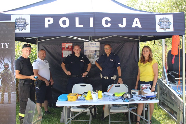 Dziękujemy za udział funkcjonariuszom Komendy Powiatowej Policji w Grajewie z mobilnym punktem informacyjno- profilaktycznym, gdzie dostępne były informacje oraz porady dotyczące przeciwdziałania przemocy domowej, przestępstw na szkodę małoletnich, cyberprzestępczości czy oszustw na szkodę seniorów. W celu podniesienia świadomości uczestników ruchu drogowego dostępny był również pokaz z symulatorem zderzenia, urządzeniem pozwalającym wyobrazić sobie jak wielka siła bezwładności działa na uczestnika wypadku podczas zderzenia czołowego. Dziękujemy również strażakom z Państwowej Straży Pożarnej w Grajewie za udział w wydarzeniu z wozem bojowym i prezentacją jak należy udzielić prawidłowo pierwszej pomocy ofiarom wypadku drogowego. Nie zabrakło też mobilnego punktu rekrutacyjnego Wojskowego Centrum Rekrutacji w Łomży.