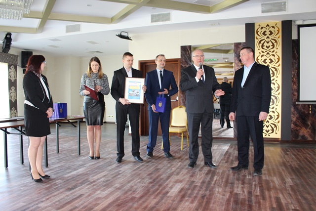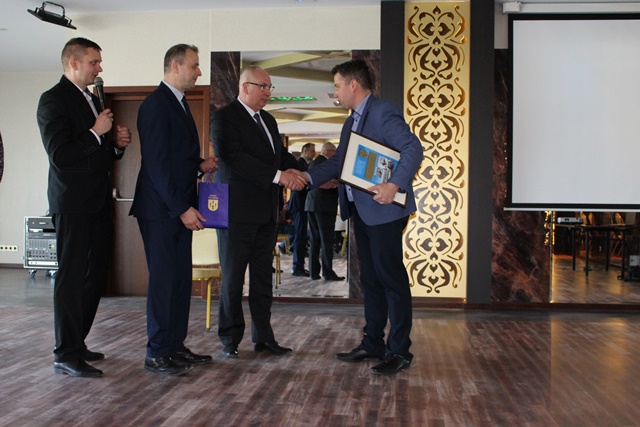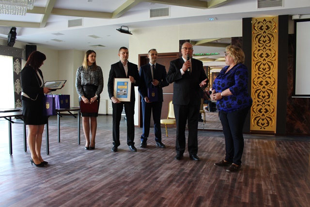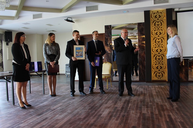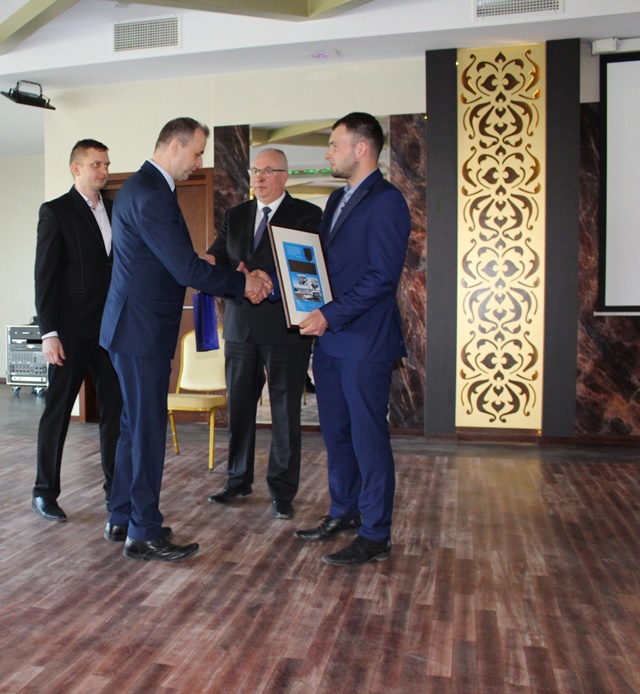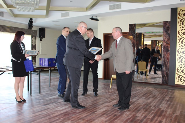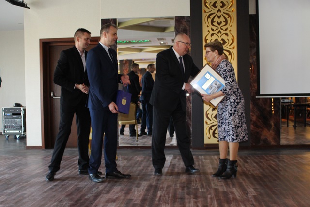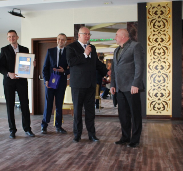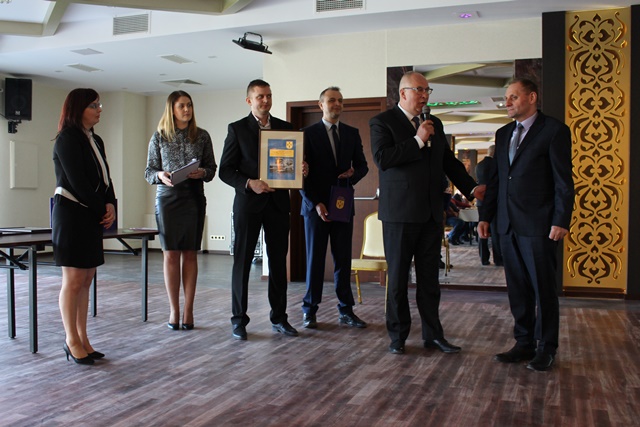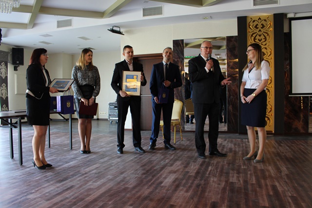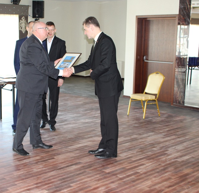 Na zakończenie uroczystości Burmistrz Rajgrodu wraz z Sekretarzem Gminy i Dyrektorem ZGKiM wręczyli grawertony osobom, które w sposób szczególny przesłużyły się do powstania w Rajgrodzie nowoczesnej oczyszczalni ścieków.