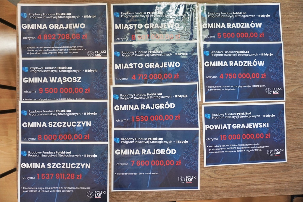 Dnia 15 czerwca 2022 r. Gmina Rajgród otrzymała od Banku Gospodarstwa Krajowego dwie „Promesy wstępne” dotyczące środków finansowych pozyskanych z II edycji „Rządowego Funduszu Polski Ład: Program Inwestycji Strategicznych”.